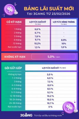 >>> Tranh thủ tích lũy ngay hôm nay để ẵm trọn mức lãi suất siêu ưu đãi từ 3Gang